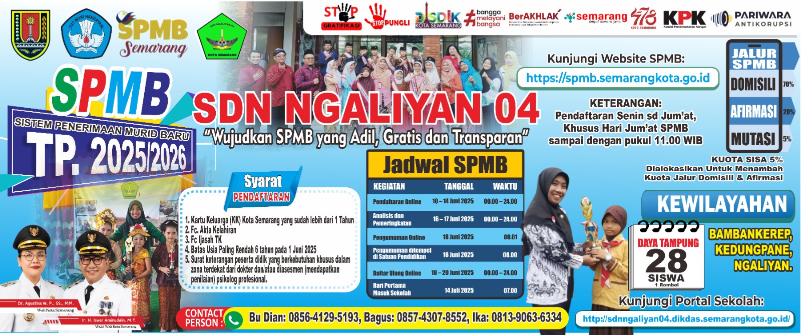 Kami berusaha menyajikan informasi tentang Siswa, Guru, karyawan,tendik dan kegiatan-kegiatan disekolah SD Negeri Ngaliyan 04, informasi atau pengumuman penting yang dibutuhkan oleh masyarakat umum. selain itu, kami juga memberikan sedikit informasi tentang tempat Pariwisata,Kesehatan yang ada disekitar SD Negeri Ngaliyan 04.